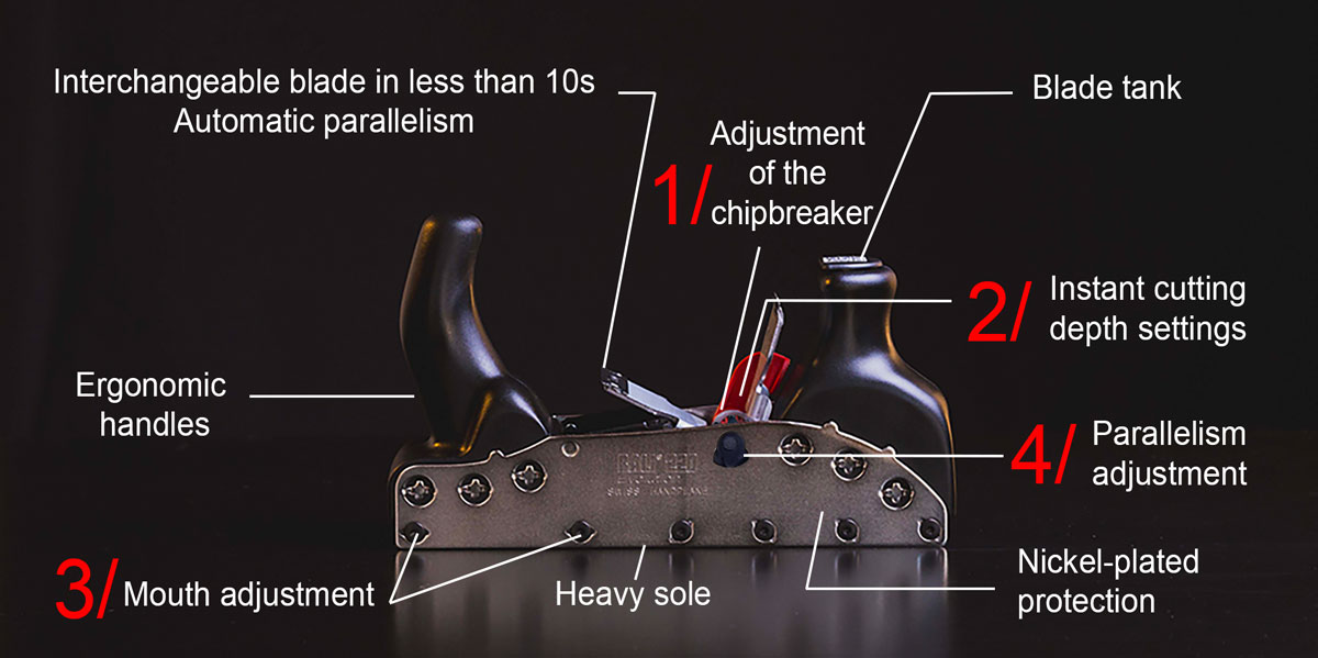 The new premium hand plane now features a 4th adjustment to fine-tune blade parallelism.